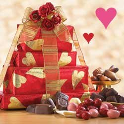Deluxe Valentines Day Tower of Chocolates - Valentine Gift Basket Lowest Price